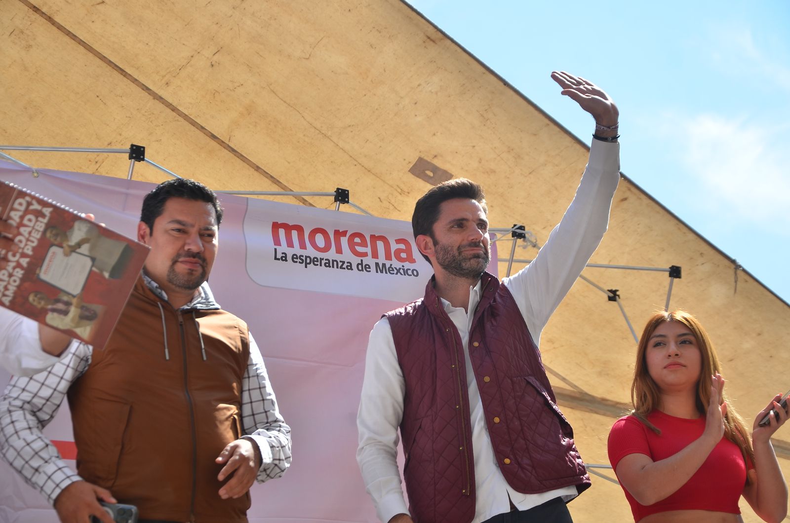 Rodrigo Abdala, aspirante a la precandidatura a la presidencia municipal de Puebla capital, acompañó este día al precandidato único de Morena al gobierno de Puebla, Alejandro Armenta, a la toma de protesta de los comités en Ajalpan y Tehuacán.
