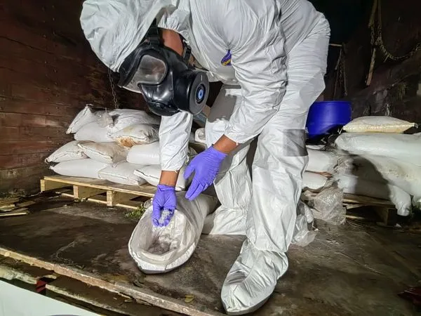 ·80 costales con una sustancia blanca y granulada.