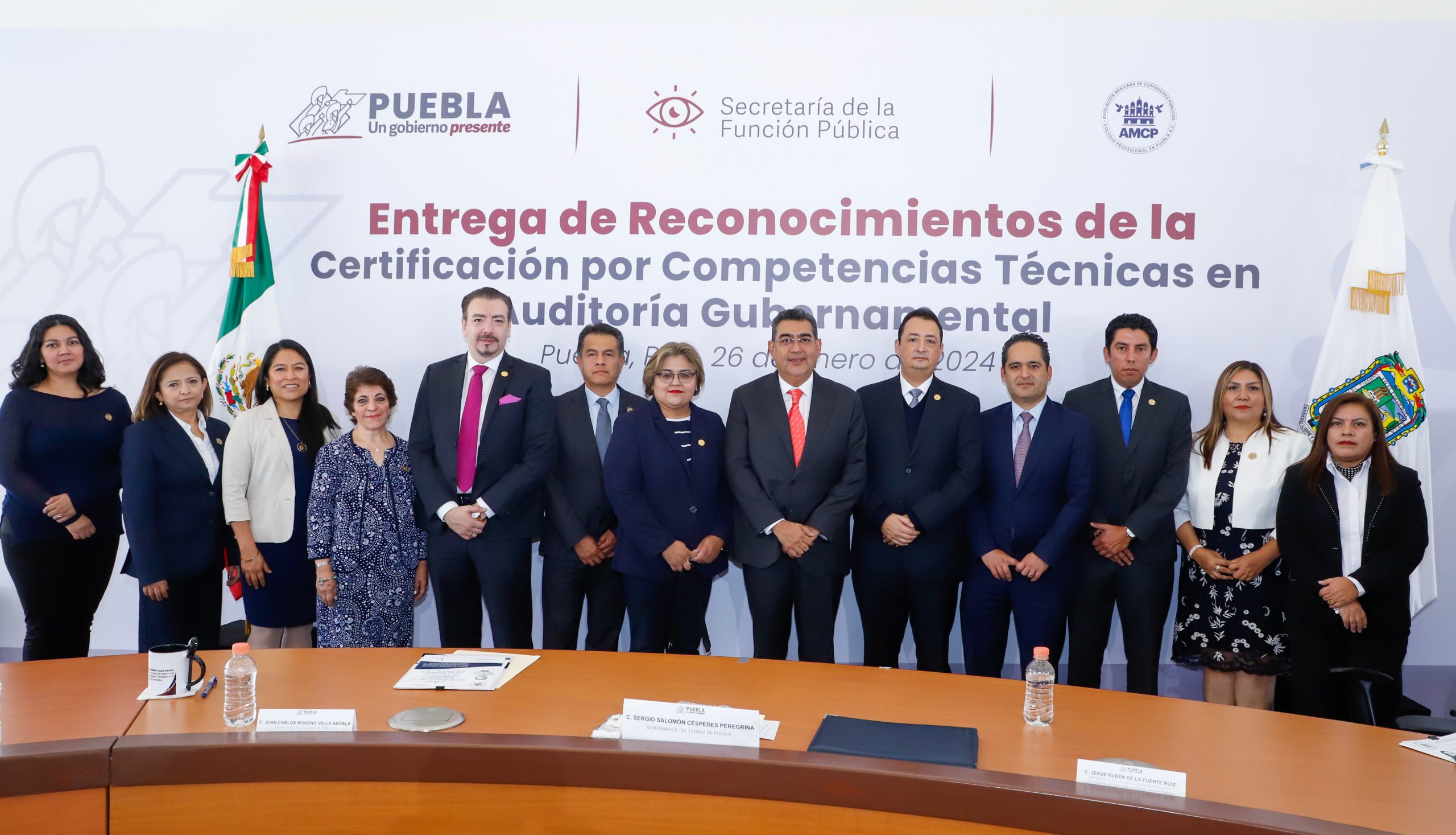 En una ceremonia llevada a cabo el día de hoy y presidida por el gobernador de puebla Sergio Salomón Cespedes Peregrina, se realizo la entrega de reconocimientos a 35 servidores públicos quienes se certificaron por competencias técnicas en auditoria gubernamental, con el propósito de fortalecer el combate a la corrupción, el quehacer gubernamental, así como la transparencia, el gobierno poblano promueve que los servidores y servidoras publicas se capaciten.