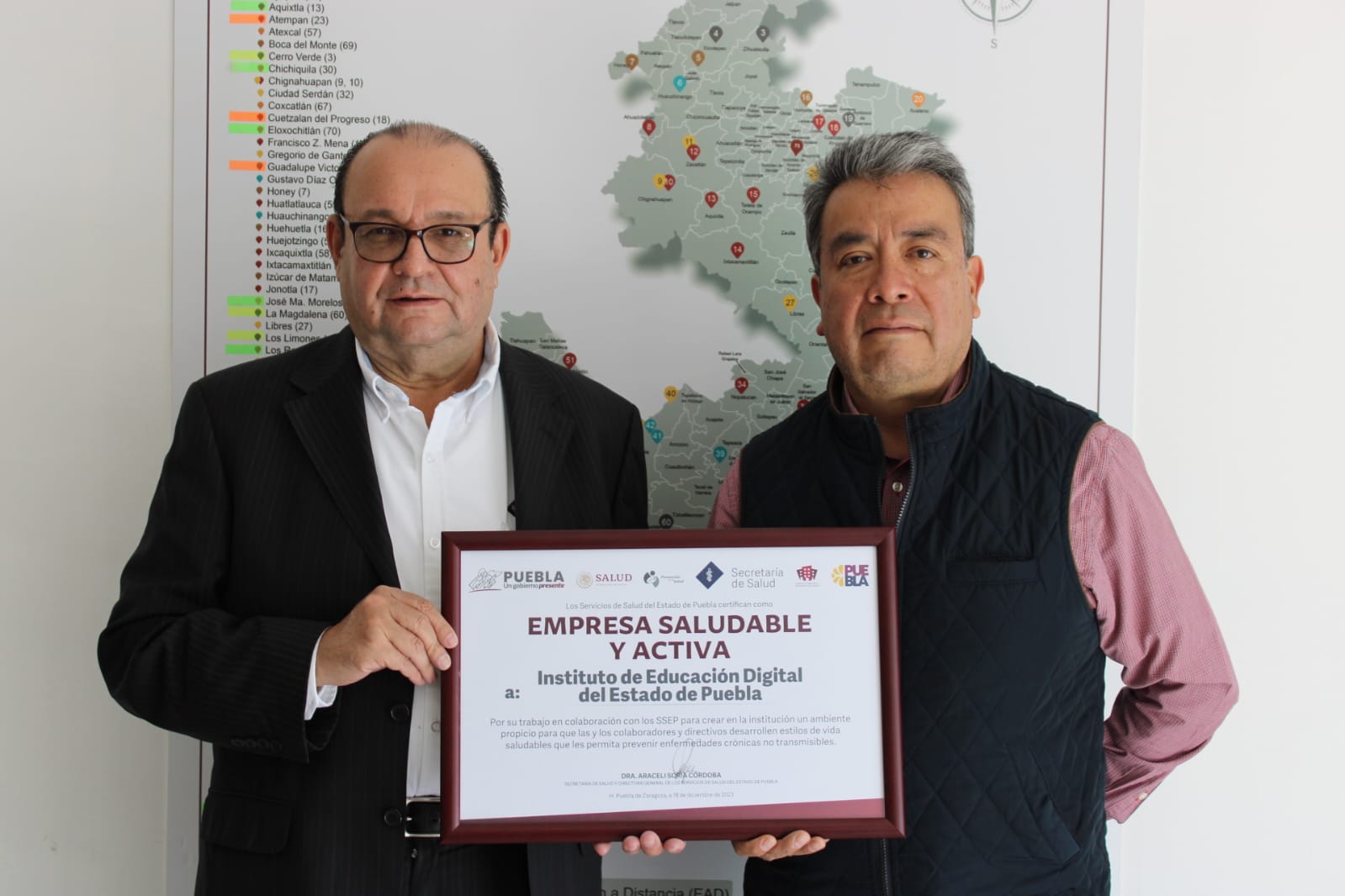 CIUDAD DE PUEBLA, Pue. – El Instituto de Educación Digital del Estado de Puebla (IEDEP) recibió una certificación como centro de trabajo saludable y activo por parte de la Secretaría de Salud, como parte de las acciones desarrolladas por el gobierno presente de Sergio Salomón para proteger la seguridad y bienestar de las y los trabajadores.