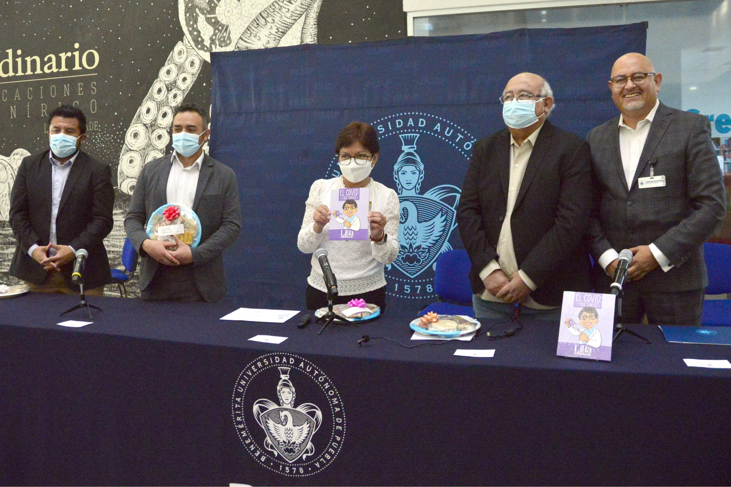 En esta presentación que tuvo lugar en la Biblioteca Central Universitaria acompañaron a la Rectora de la BUAP los diseñadores del libro Daniel Arenas Balderas y Sebastián Eduardo Condado Picazo, así como Alfredo Avendaño Arenaza, director General de Bibliotecas, entre otros.