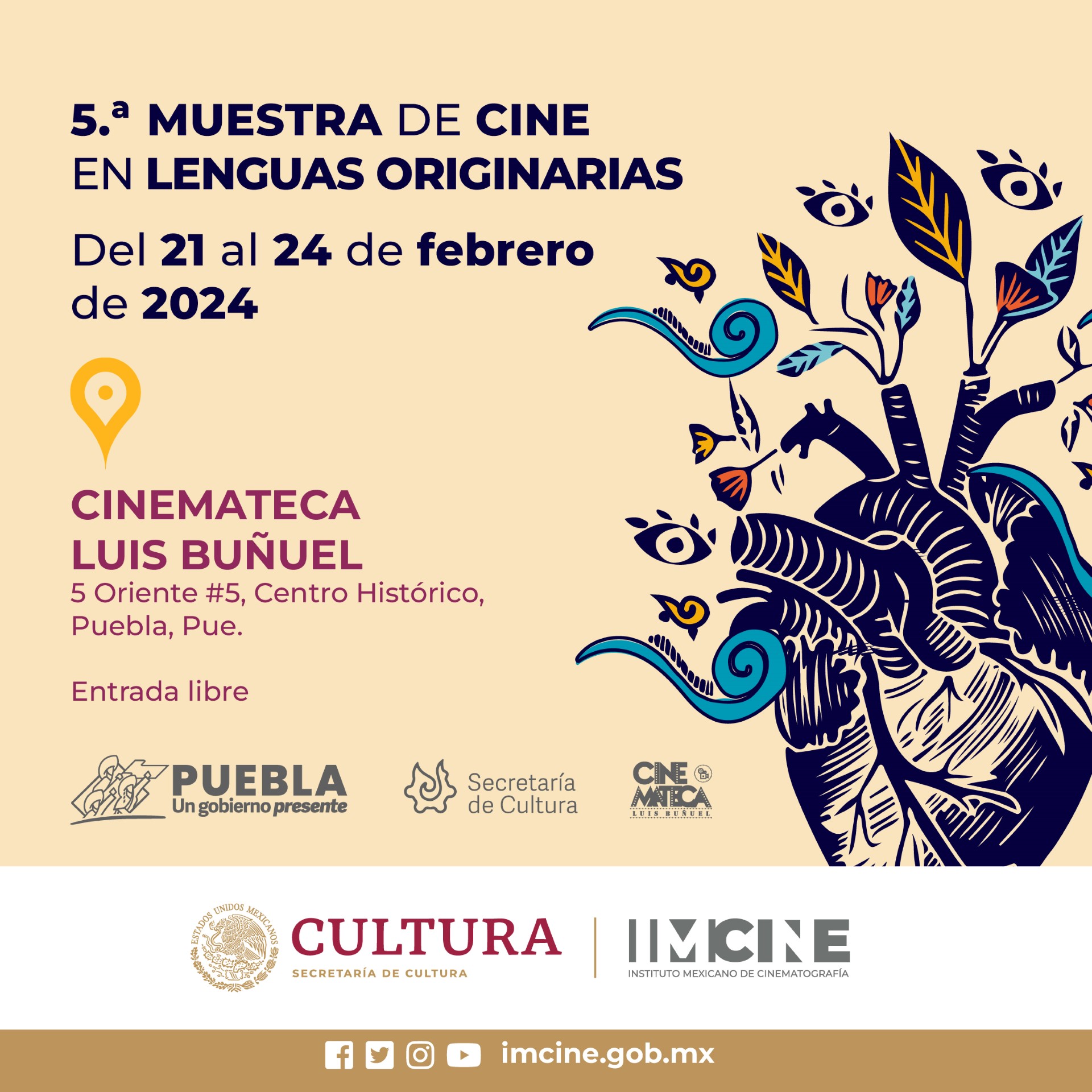 CIUDAD DE PUEBLA, Pue.- Del 21 al 24 de febrero, la Cinemateca “Luis Buñuel” albergará la “5ª Muestra de Cine en Lenguas Originarias”, organizada por el gobierno presente de Sergio Salomón, a través de la Secretaría de Cultura, en colaboración con el Instituto Mexicano de Cinematografía (IMCINE), para promover la reflexión sobre la importancia de la diversidad lingüística.