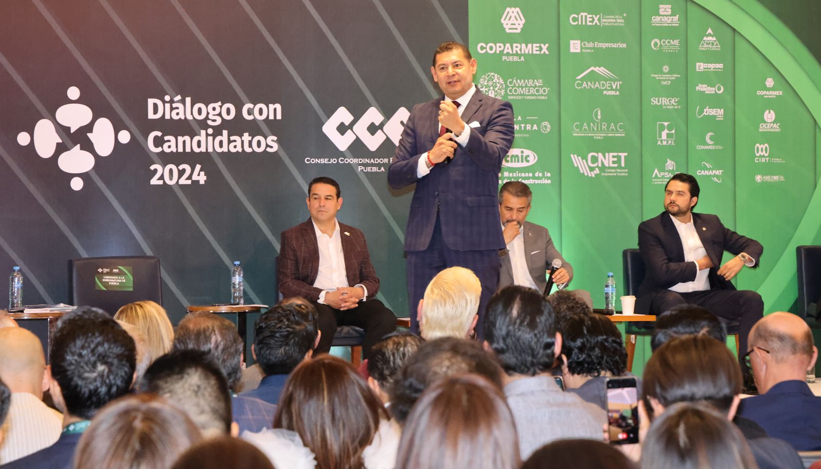 Ciudad de Puebla. En el décimo día de campaña el candidato a la gubernatura de Puebla Alejandro Armenta, participó en el Foro:“Diálogos con candidatos» presentado por el Consejo Coordinador Empresarial de Puebla (CCE). Durante el intercambio de ideas, los empresarios y Armenta desarrollaron temas contemplados en el Plan Estatal 2024-2030.