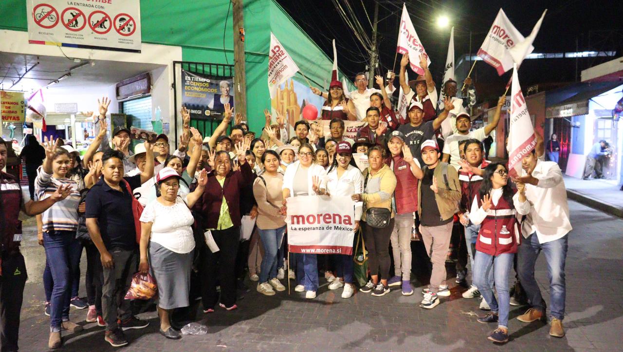 Acompañada por simpatizantes y ciudadanos que se sumaban en el recorrido, la candidata saludaba a cada uno de los y las cholultecas que se encontraba a su paso exponiendo sus propuestas de campaña y garantizando la llegada de la Cuarta Transformación al municipio.