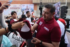 Ciudad de Puebla. En los tenis, en los guantes, en playeras, cualquier lugar fue el mejor para llevarse un autógrafo de la leyenda del boxeo mexicano Julio César Chávez, quien acompañó al candidato Alejandro Armenta a un entrenamiento masivo en la Unidad Habitacional la Margarita.