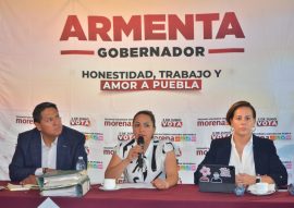 PUEBLA, PUE. Eva Hernández Cruz, regidora del ayuntamiento de Cuautlancingo, expuso en rueda de prensa una denuncia que interpuso contra Filomeno Sarmiento, alcalde con licencia y candidato del PRIAN por presunta violencia política de género. Estuvo acompañada por Edurne Ochoa, activista por los derechos humanos y vocera del candidato a gobernador Alejandro Armenta.