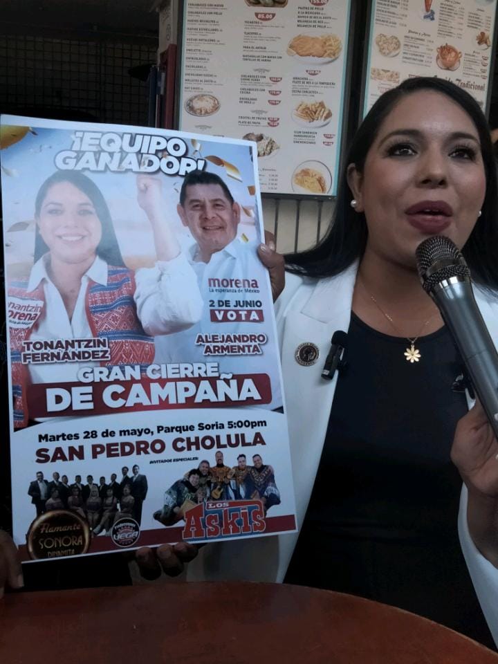La Candidata a Presidenta Municipal de San Pedro Cholula por la Coalición «Sigamos Haciendo Historia» Tonantzin Fernández declaro el día de hoy en rueda de prensa que invitaba a la población en general al cierre de su campaña en donde se destacaba el animo que se vivía a favor de la cuarta transformación, «Estamos cerrando con fuerza, han sido días con gran animo y apoyo de las y los Cholultecas», y señalo que la gente incluso de los fraccionamientos los estaba apoyando, «hemos recorrido hasta tres veces las juntas auxiliares, con pre cierres muy importantes»