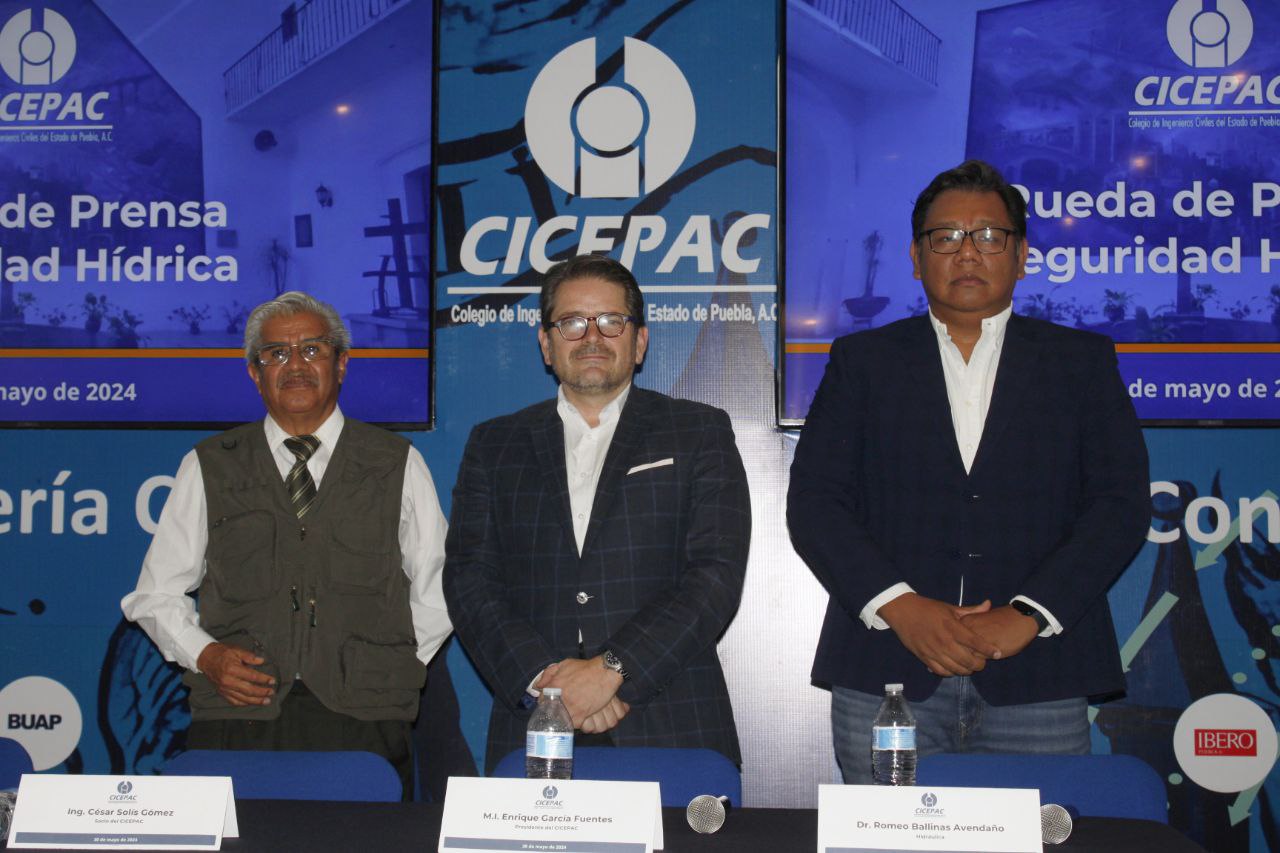 CIUDAD DE PUEBLA, Pue. – Mayo 30 del 2024.- En punto de las 10:45 horas, el Colegio de Ingenieros Civiles del Estado de Puebla A.C (CICEPAC), organizo una conferencia de prensa en el que abordaron el tema de la seguridad hídrica en Puebla. El Ing. Cesar Solís Gómez, comenzó mostrando unos datos con respecto al índice de agua sostenible que había en Puebla. Dentro de esos datos, señalo los parámetros en disponibilidad de agua tenemos.