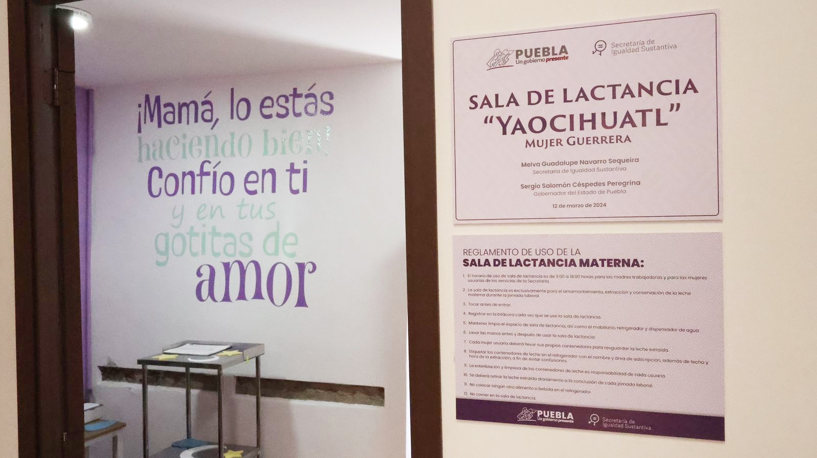 A través de la Norma Mexicana NMX-R-SCFI-2015 en Igualdad Laboral y No Discriminación, 31 dependencias y entidades estatales han instalado y certificado salas de lactancia cumpliendo con los requerimientos de higiene, equipo y accesibilidad, en sus edificios y áreas laborales. Por su parte, la SIS cuenta con un espacio certificado en las instalaciones de la calle 2 Sur 902 colonia Centro de Puebla capital, de 09:00 a 18:00 horas.