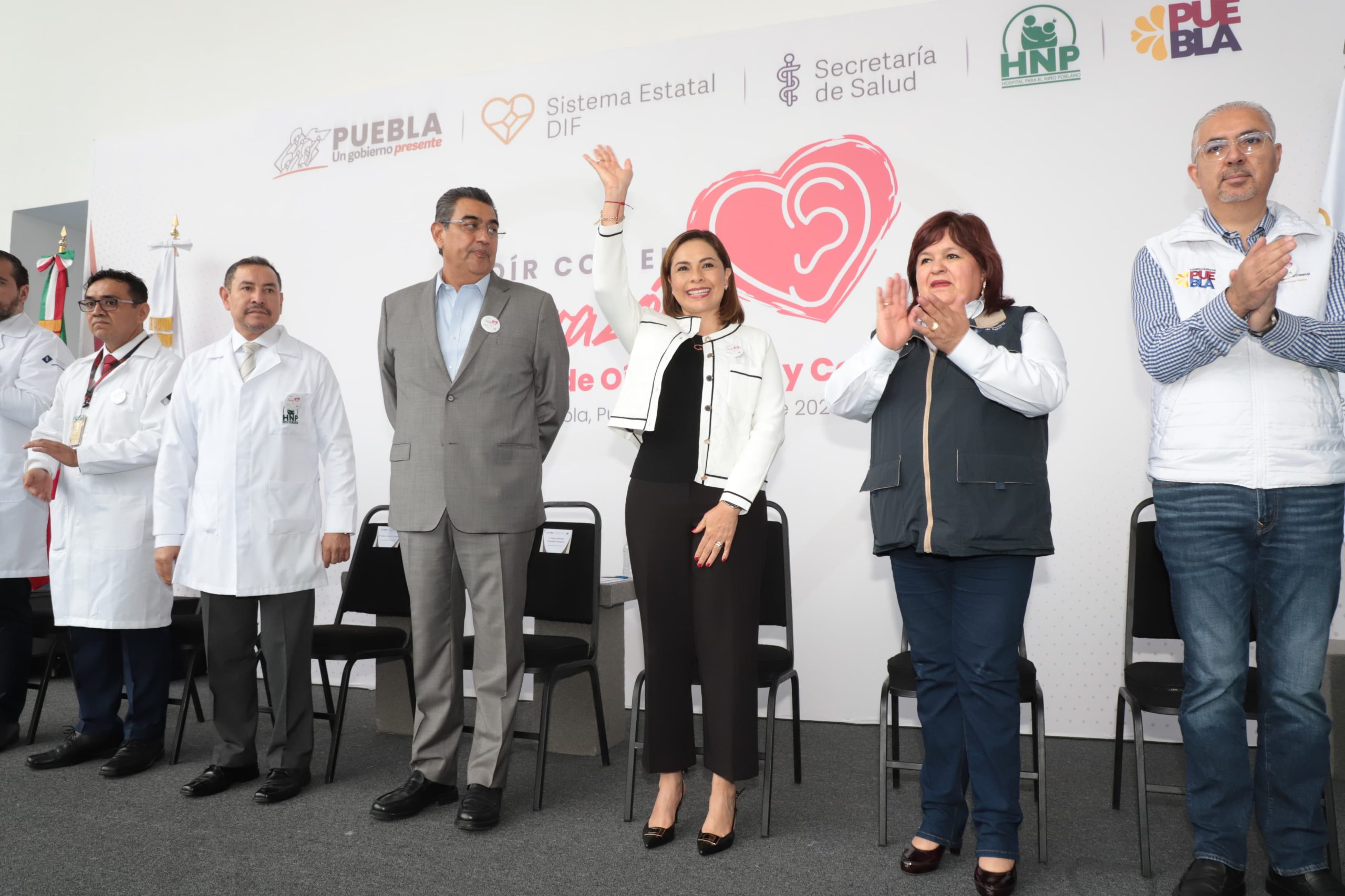 SAN ANDRÉS CHOLULA, Pue.- Como resultado de la generación de alianzas entre instituciones en búsqueda del bienestar de la niñez poblana, el gobernador Sergio Salomón y la presidenta honoraria del Patronato del Sistema Estatal DIF, Gaby Bonilla encabezaron el arranque del programa «Oír con el Corazón: Cirugías de Oído Medio y Coclear», único en el país y con una inversión de alrededor de 37 millones de pesos, mismo que beneficiará a 37 infantes de 24 municipios que presentan problemas auditivos.