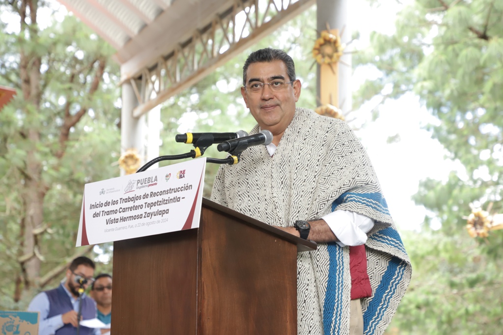 VICENTE GUERRERO, Pue. – Agosto 22 del 2024.-El gobierno estatal ha demostrado con hechos que ejecuta acciones para que Puebla progrese, tenga bienestar y esté unida, manifestó el gobernador Sergio Salomón al presidir el inicio de la reconstrucción de 10 kilómetros de la carretera Azumbilla-Tlacotepec de Porfirio Díaz, en el tramo Tepetzizintla–Vista Hermosa Zayulapa, acción que tendrá una inversión de más de 40 millones de pesos y que beneficia más de 26 mil habitantes.