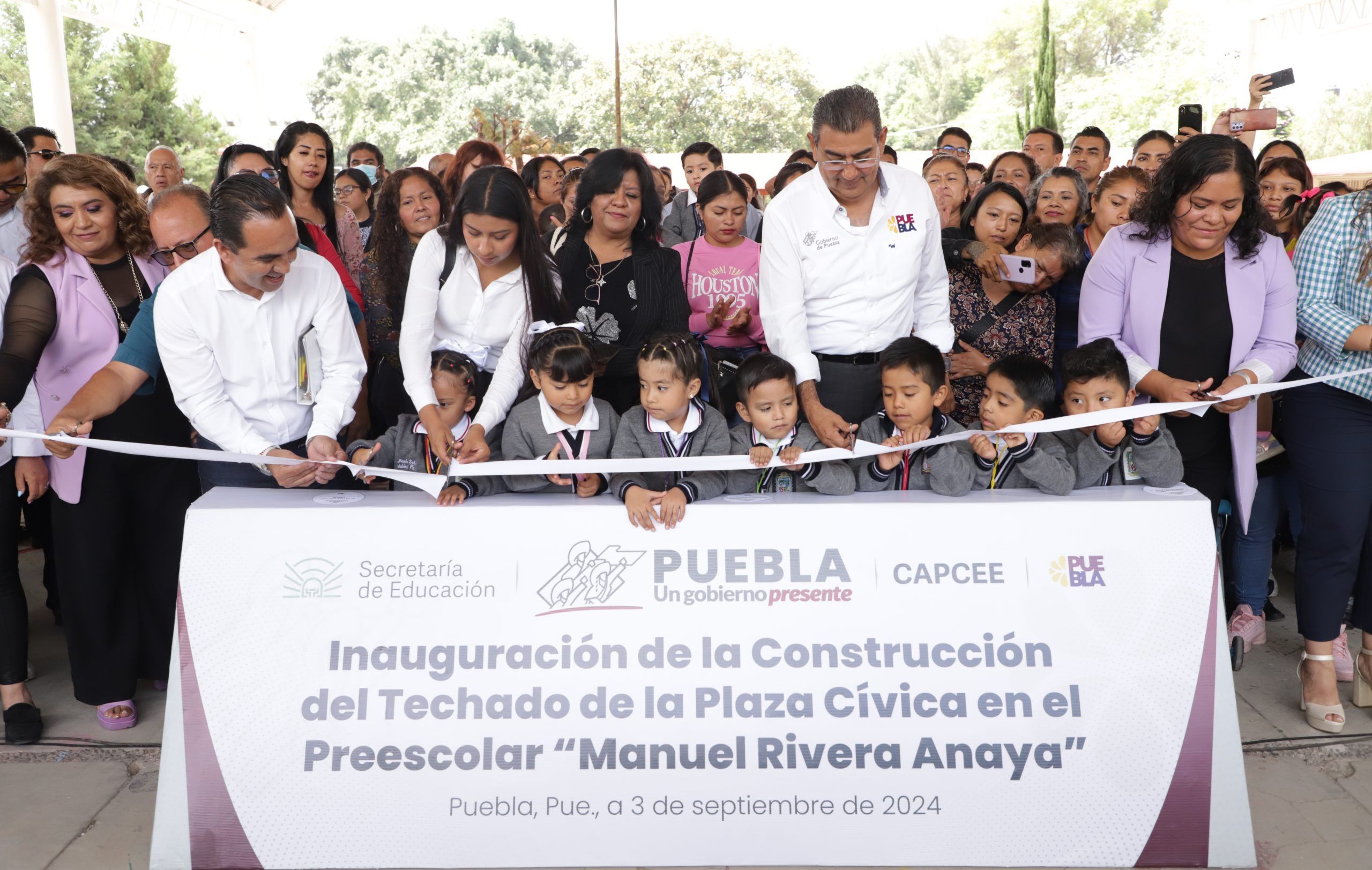 Lo anterior lo expuso al inaugurar la construcción de los techados de las canchas de usos múltiples de las escuelas primaria bilingüe “Fuertes de Guadalupe y Loreto” y primaria “Lic. Alfredo V. Bonfil”, y los techados de las plazas cívicas de la escuela primaria federal urbana matutina “Organización de las Naciones Unidas” y el preescolar “Manuel Rivera Anaya”, todas en Puebla capital y con una inversión superior a los 12 millones de pesos.