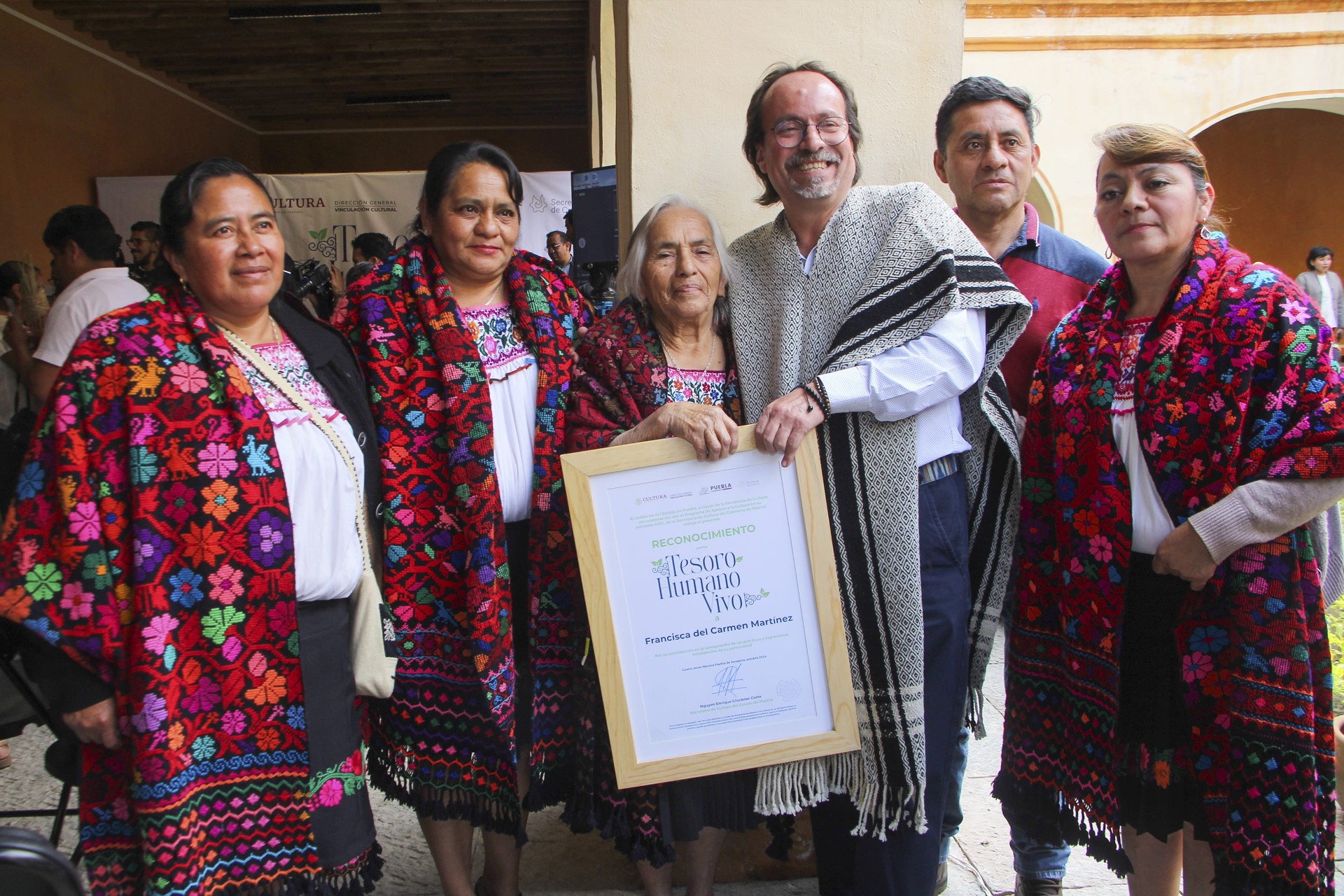 CIUDAD DE PUEBLA, Pue.– Octubre 14 del 2024.- En el pleno de esta tarde, el gobierno del estado, a través de la Secretaría de Cultura, encabezó la ceremonia de reconocimientos, correspondiente a la convocatoria “Tesoros Humanos Vivos”.