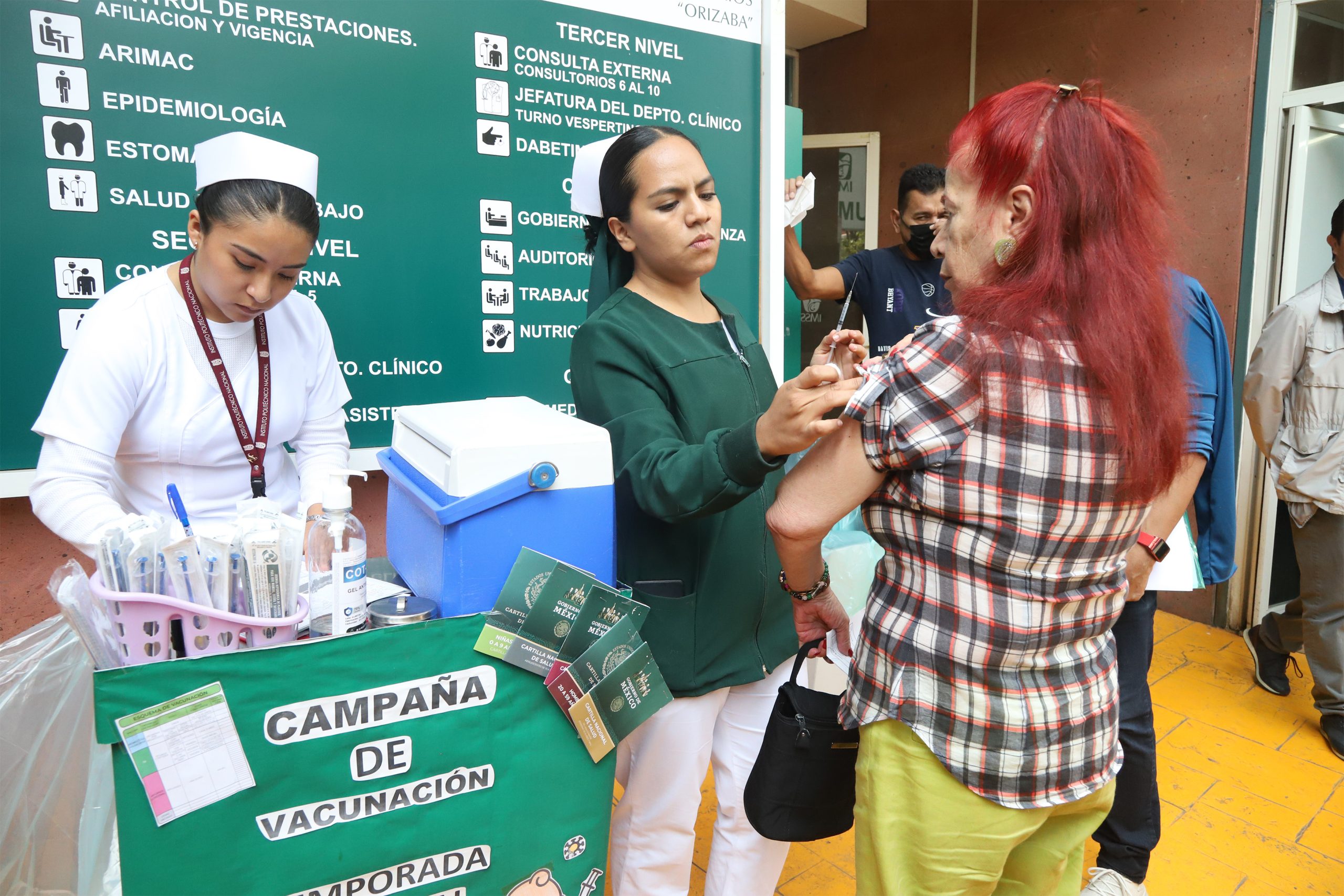 Indicó que en este esfuerzo sectorial el IMSS participa con el personal de Enfermería de las UMF que labora en los módulos PrevenIMSS y la contratación de mil 460 vacunadores para la atención de los puestos semifijos y las brigadas que realizan actividades extramuros.