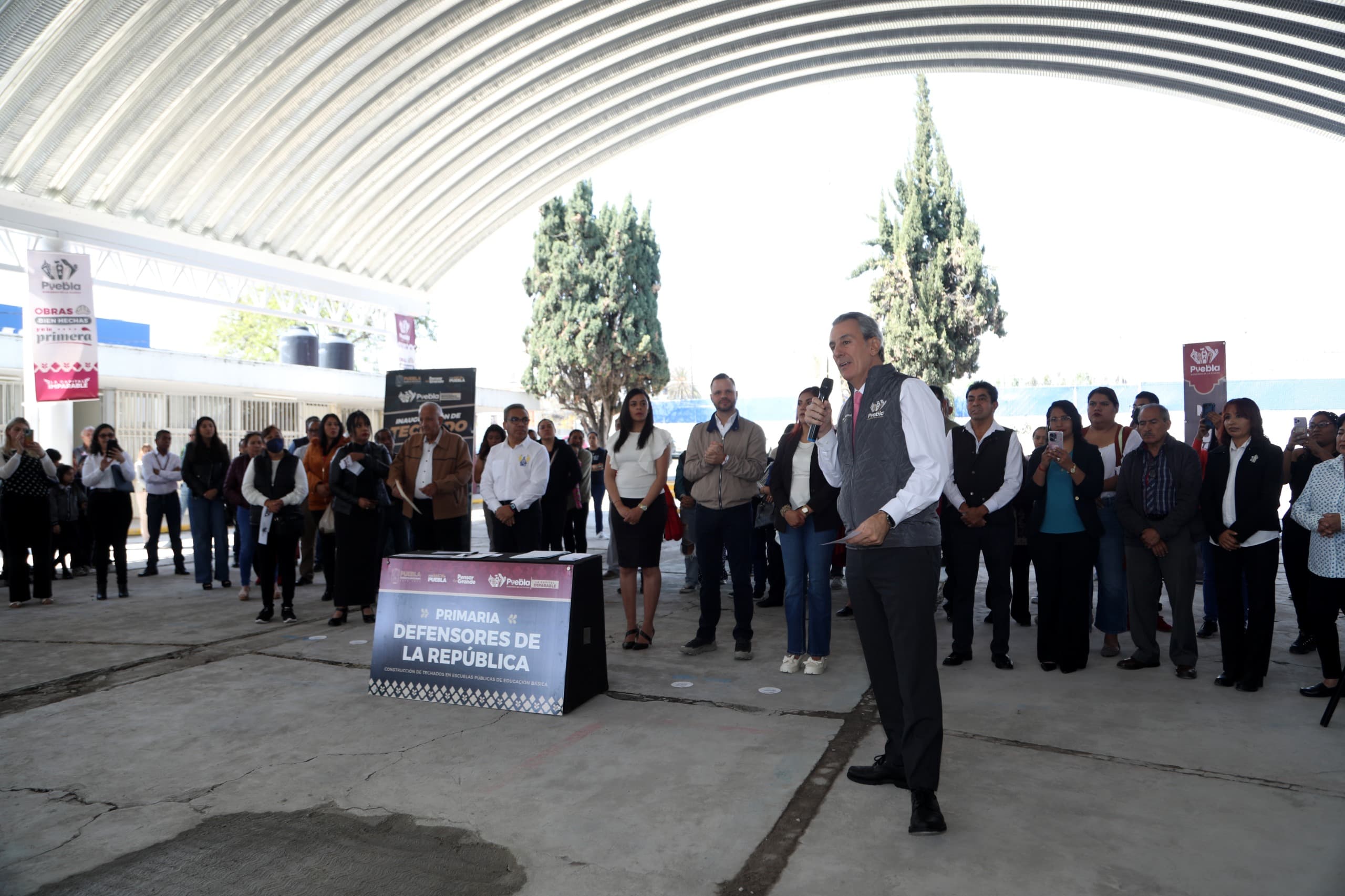 En su intervención, el director de proyectos y costos del Comité Administrador Poblano para la Construcción de Espacios Educativos (CAPCEE), Alberto Orozco Pinto mencionó que, la entrega de techados en escuelas públicas de la capital del estado, es una muestra del compromiso que el gobernador, Alejandro Armenta, y el alcalde, Pepe Chedraui, tienen con la formación integral de la niñez y juventud poblana.