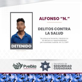 Estas acciones realizadas con la implementación de despliegues territoriales, dieron como resultado la detención de Alfonso “N”, de 23 años de edad, quien además estaba cometiendo una falta administrativa.