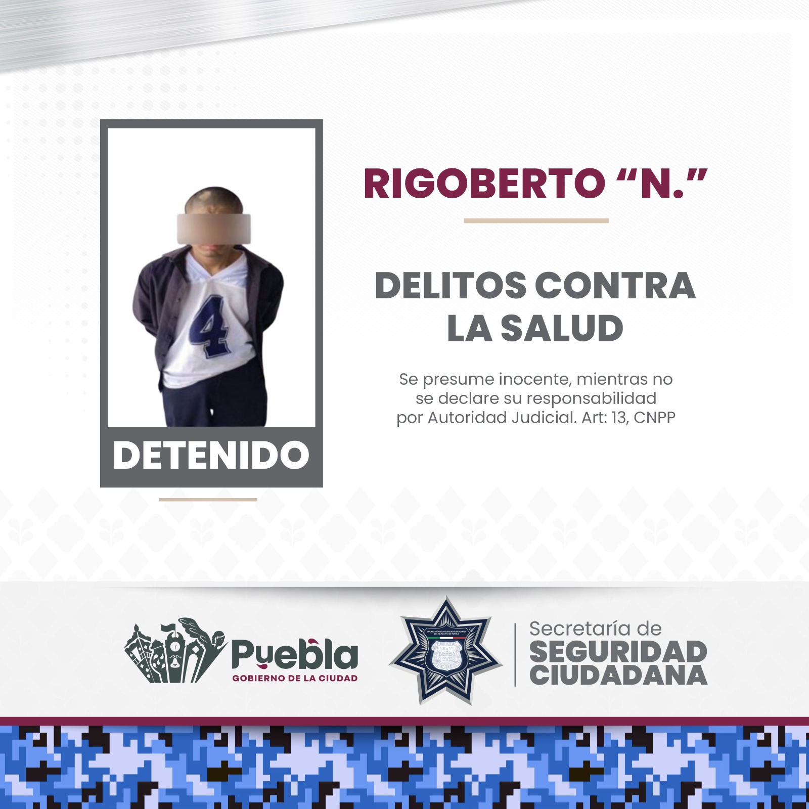 En una segunda acción, elementos de la Policía de la Ciudad, realizaron el aseguramiento de Rigoberto “N”, presuntamente responsable de la comisión de delitos contra la salud.