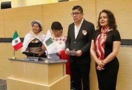 El acto inició con la lectura a tres voces del Poema a la Batalla de Puebla, interpretado en náhuatl por Zenaida Ortuño Alejo, en kichwa por Jessica Jomaira Guapulema Kuri y por el autor de la composición, el tehuacanero Abel Pérez Rojas.
