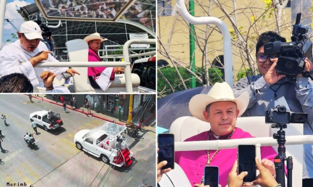 Arzobispo de Chiapas pasea en papamóvil con fuerte dispositivo de seguridad