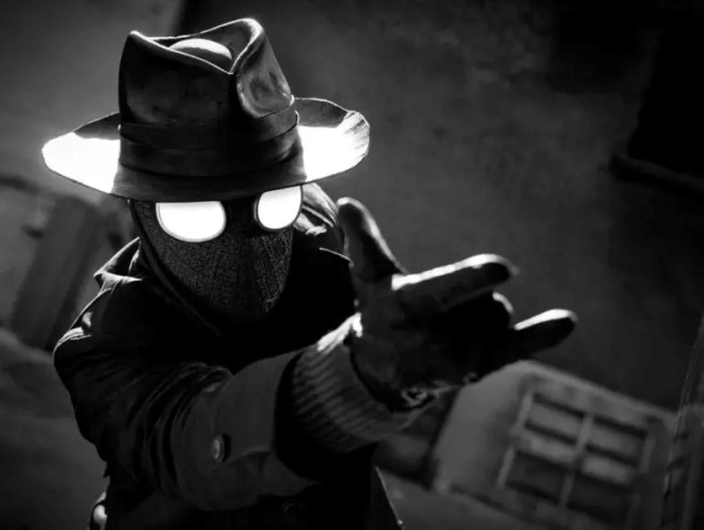 El primer adelanto muestra a Cage con el clásico sombrero fedora, gafas redondas blancas, una máscara de telaraña negra y una gabardina que evoca el cine noir.