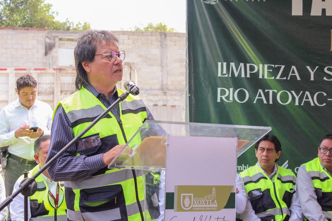 SAN MIGUEL XOXTLA, Pue. – Como parte del compromiso del gobernador Alejandro Armenta, bajo la visión de la presidenta Claudia Sheinbaum de sanear y recuperar el Río Atoyac para las y los poblanos, fue llevada a cabo una faena comunitaria en el Canal Tlapalac de este afluente, de manera coordinada entre la federación, el gobierno estatal, a través de la Comisión Estatal de Agua y Saneamiento (CEASPUE) y diversos municipios.