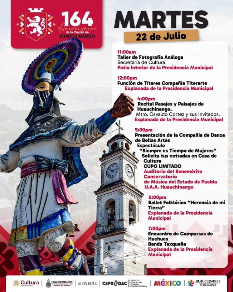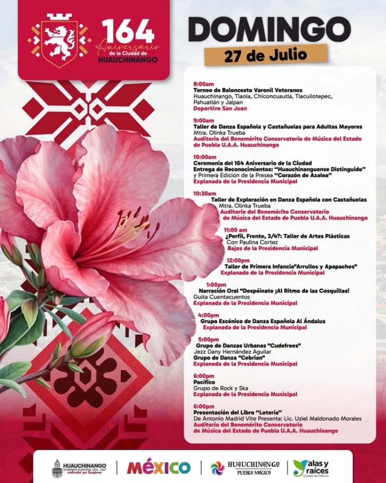 HUAUCHINANGO.- Julio 19 del 2025.- Es momento de celebrar nuestra historia, cultura y el orgullo de ser huauchinanguenses.