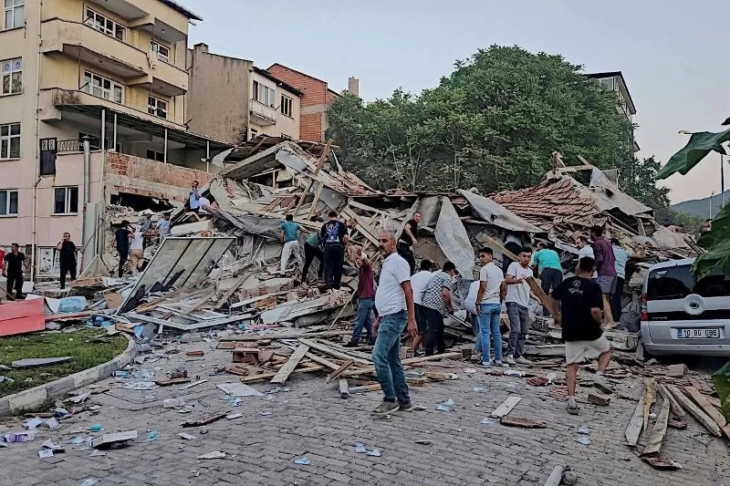 Agosto 10 del 2025.- (EFE / (Foto tomada de redes sociales).- Un terremoto de magnitud 6.1 sacudió este domingo la región de Mármara, en el noroeste de Turquía, causando un número no determinado de heridos y al menos diez edificios colapsados.