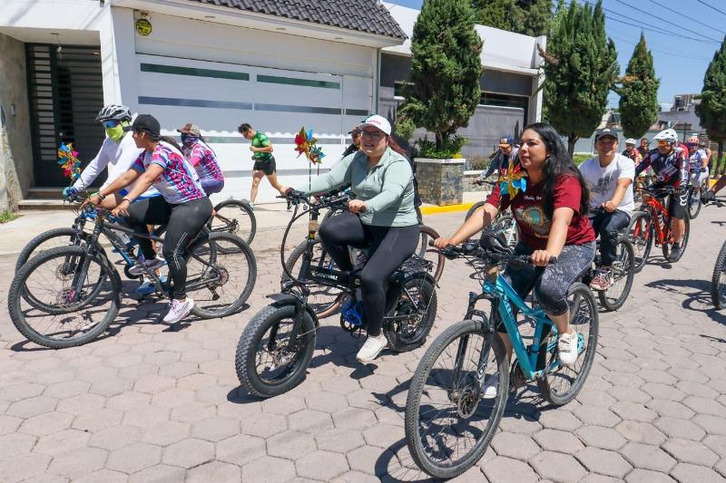 En este encuentro, Tonantzin Fernández y Lupita Cuautle unieron a las Cholulas para promover el ciclismo, destacando que, aunque provengan de diferentes partidos y corrientes de pensamiento, comparten la misma disposición de impulsar juntas el deporte.