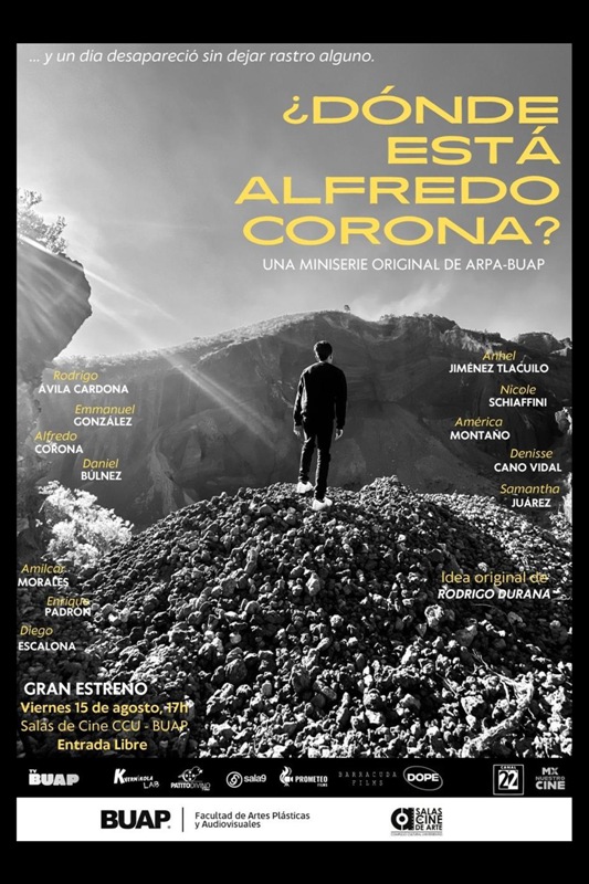 BUAP.- Agosto 17 del 2025.- ¿Dónde está Alfredo Corona? es la primera miniserie producida, realizada y dirigida por alumnos y docentes de la Facultad de Artes Plásticas y Audiovisuales (ARPA) de la BUAP, la cual fue estrenada este 15 de agosto en las Salas de Cine de Arte del Complejo Cultural Universitario.