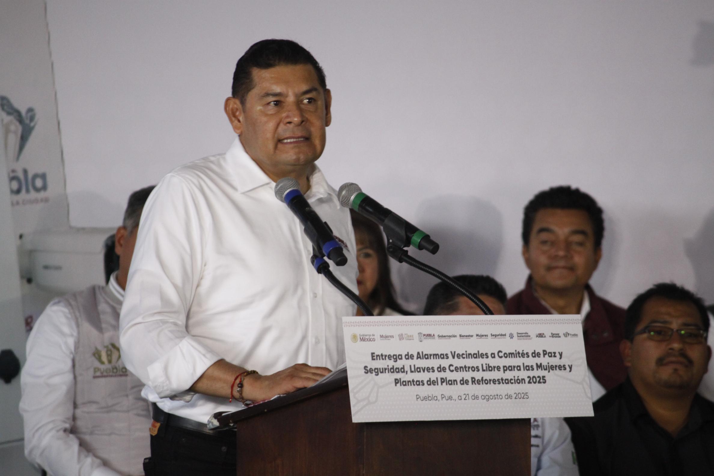 CIUDAD DE PUEBLA, Pue. – Agosto 21 del 2025.- El Gobernador del Estado de Puebla, Alejandro Armenta, encabezó la entrega de Alarmas Vecinales en San Pablo Xochimehuacan.