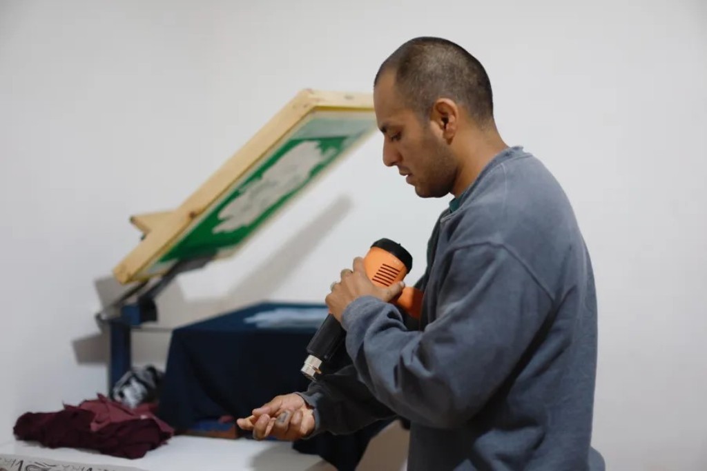 “Lo que hacemos es explotar la imaginación, para que no solamente estén pensando en la cárcel (…) que los llevemos a pensar: ‘¿Por qué esta línea me quedó chueca?’ Que piensen en el trabajo; creo que ahí empieza a construirse la ventana del arte y empiezan a obtener su libertad mental”, afirma Ismael Corona a EFE, serigrafista y uno de los fundadores de Cana 77.