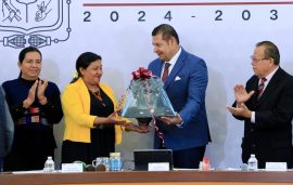 CIUDAD DE PUEBLA, Pue.- Con la finalidad de fortalecer las tradiciones, costumbres y el sentido de pertenencia de las y los migrantes poblanos en Estados Unidos, el gobernador de Puebla, Alejandro Armenta, entregó reconocimientos a las y los ganadores del concurso “Calaveras que Cruzaron» y a los líderes que colocaron una ofrenda monumental de Huaquechula, en la Casa de Representación en Passaic, Nueva Jersey.