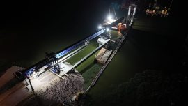 CIUDAD DE PUEBLA, Pue. – Con personal y maquinaria especializada, el Gobierno del Estado a cargo del mandatario Alejandro Armenta, avanza en la colocación de trabes que conformarán la estructura del puente vehicular que sustituirá a La Panga y que conectará a 7 municipios de la región de Valsequillo.