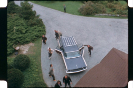 La Directora Jackie Kennedy pide a una decena de agentes del Servicio Secreto que corran hacia la casa principal de la granja y reaccionen como si acabaran de escuchar disparos. Allí dentro encuentran al Presidente tirado en el suelo en el vestíbulo con salsa ketchup como sangre falsa.