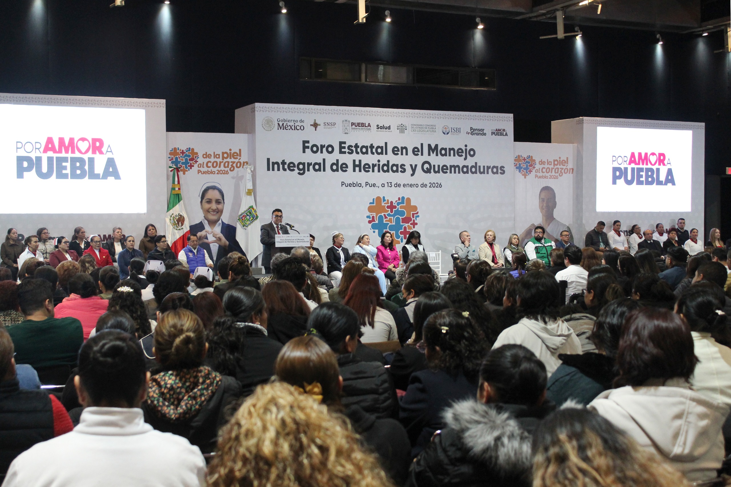CIUDAD DE PUEBLA, Pue.- Con el objetivo de fortalecer la formación y la atención clínica, el Gobierno de Puebla que encabeza Alejandro Armenta, a través de la Secretaría de Salud, clausuró el Foro Estatal en el Manejo Integral de Heridas y Quemaduras denominado “De la Piel al Corazón”, el cual se desarrolló en el Centro de Convenciones.
