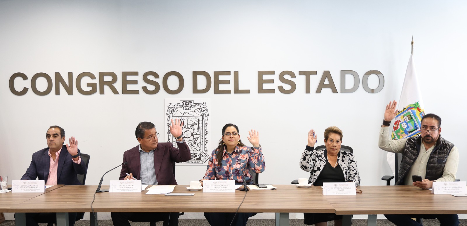 A la sesión de la Comisión de Hacienda y Patrimonio Municipal asistieron las y los diputados Laura Guadalupe Vargas Vargas, Modesta Delgado Juárez, Julio Miguel Huerta Gómez, Rafael Alejandro Micalco Méndez y Óscar Mauricio Céspedes Peregrina.