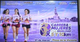 CIUDAD DE PUEBLA, Pue.- Con la finalidad de visibilizar la contribución invaluable de las mujeres en cada sector de la sociedad, el próximo 01 de marzo se llevará a cabo la Carrera por las «Mujeres y la Igualdad», con la participación de 3 mil corredoras, resaltó el gobernador Alejandro Armenta Mier.