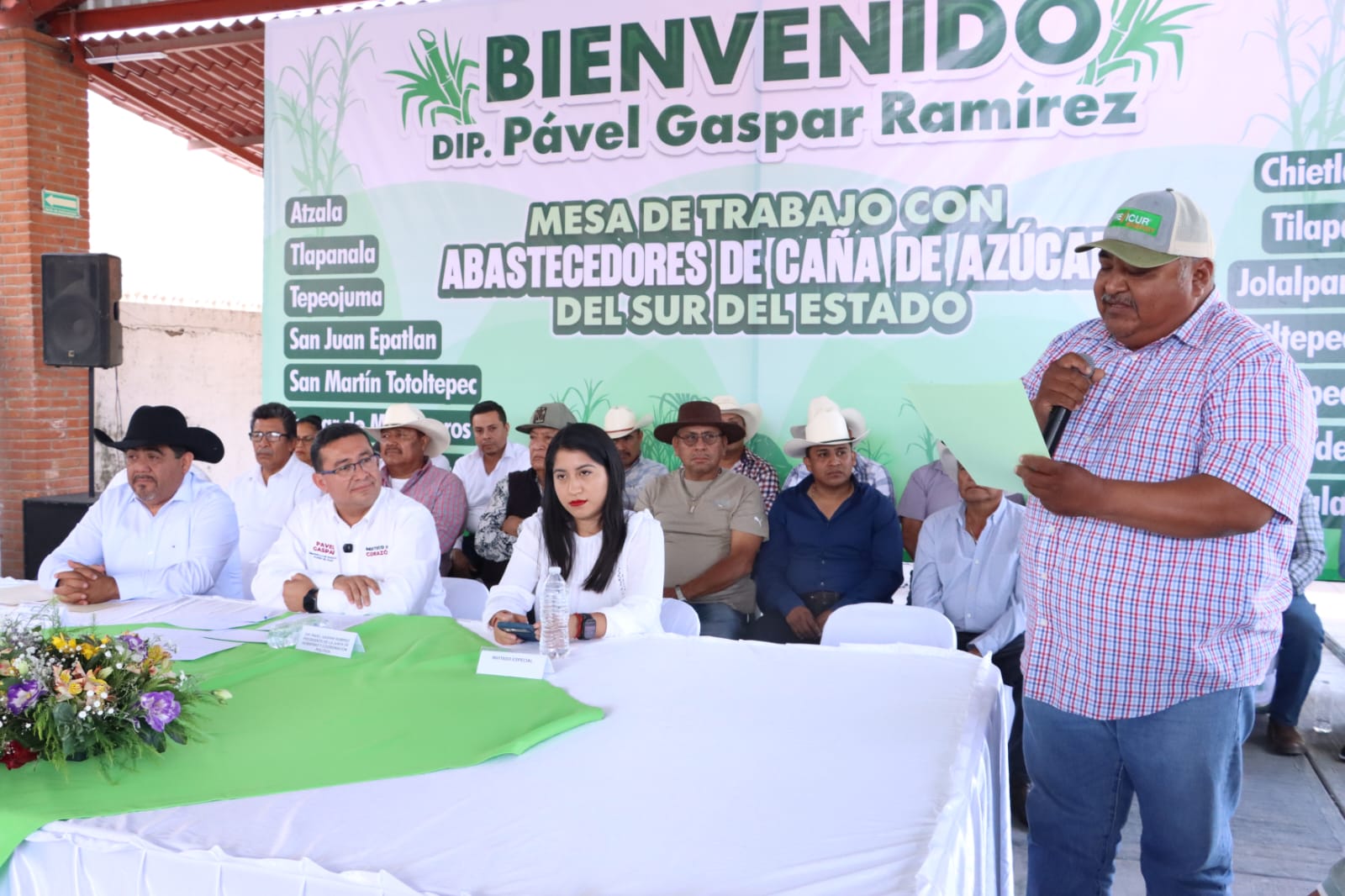En esta reunión se contó con la presencia de productores cañeros de Tepeojuma, Atzala, Tlapanalá, San Juan Epatlán, San Martín Totoltepec, Huehuetlán el Chico, Chietla, Tilapa, Jolalpan, Xochiltepec, Coayuca de Andrade y Huaquechula, así como de autoridades estatales y municipales.