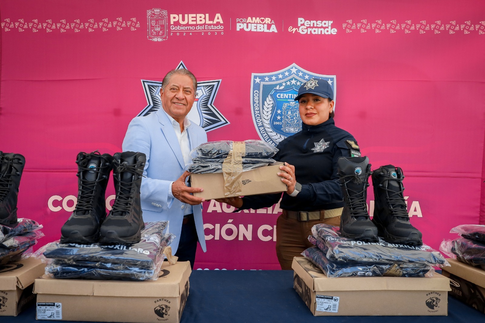 CIUDAD DE PUEBLA, Pue.- Como parte de una estrategia orientada a mejorar las condiciones operativas de las y los guardias policiales y del personal médico que integra la Corporación Auxiliar de Policía de Protección Ciudadana, el Gobierno del Estado de Puebla, encabezado por el gobernador Alejandro Armenta Mier, concluyó con la entrega de uniformes.