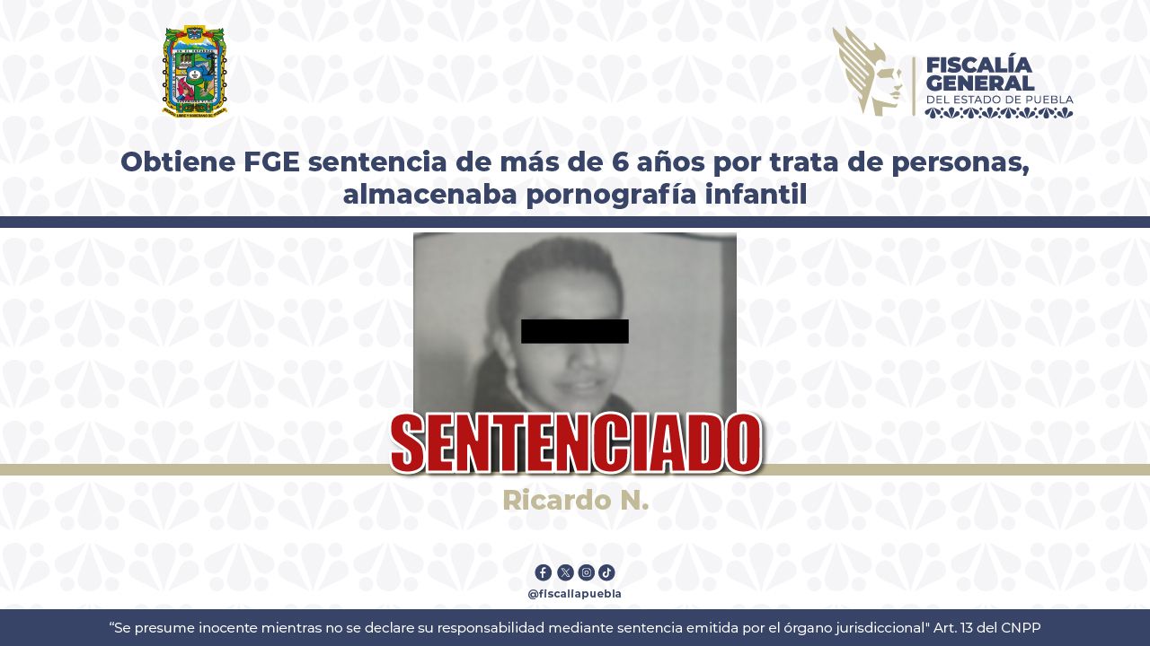 Como resultado del proceso penal, la Fiscalía General del Estado de Puebla (FGE) obtuvo sentencia