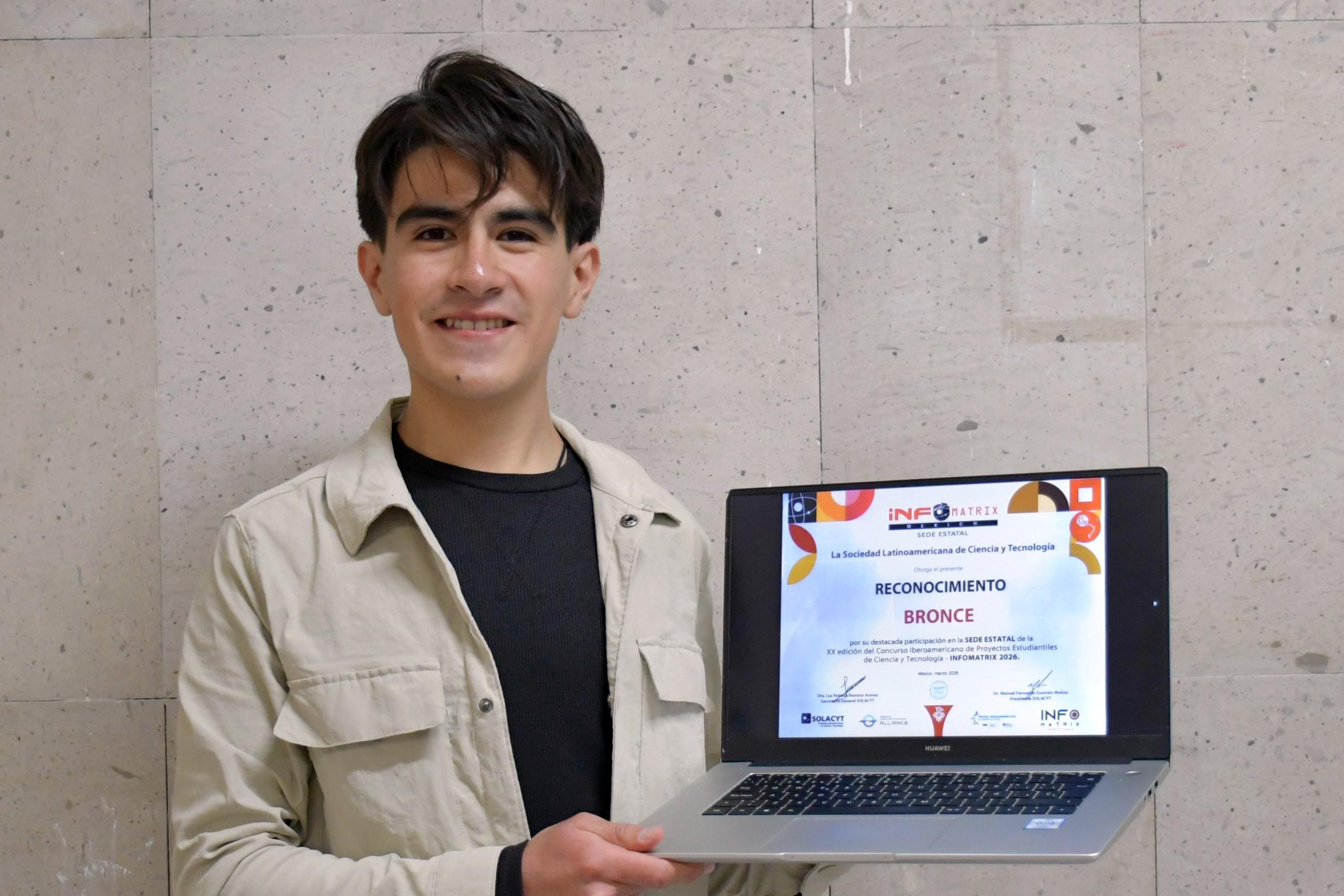 CIUDAD DE PUEBLA, Pue. – Abril 23 del 2026.- El estudiante de la Benemérita Universidad Autónoma de Puebla (BUAP), Adrián Sedeño Villegas, alumno de la Facultad de Ciencias Biológicas, obtuvo la medalla de bronce en el concurso Infomatrix Puebla 2026, en la categoría de Divulgación científica.